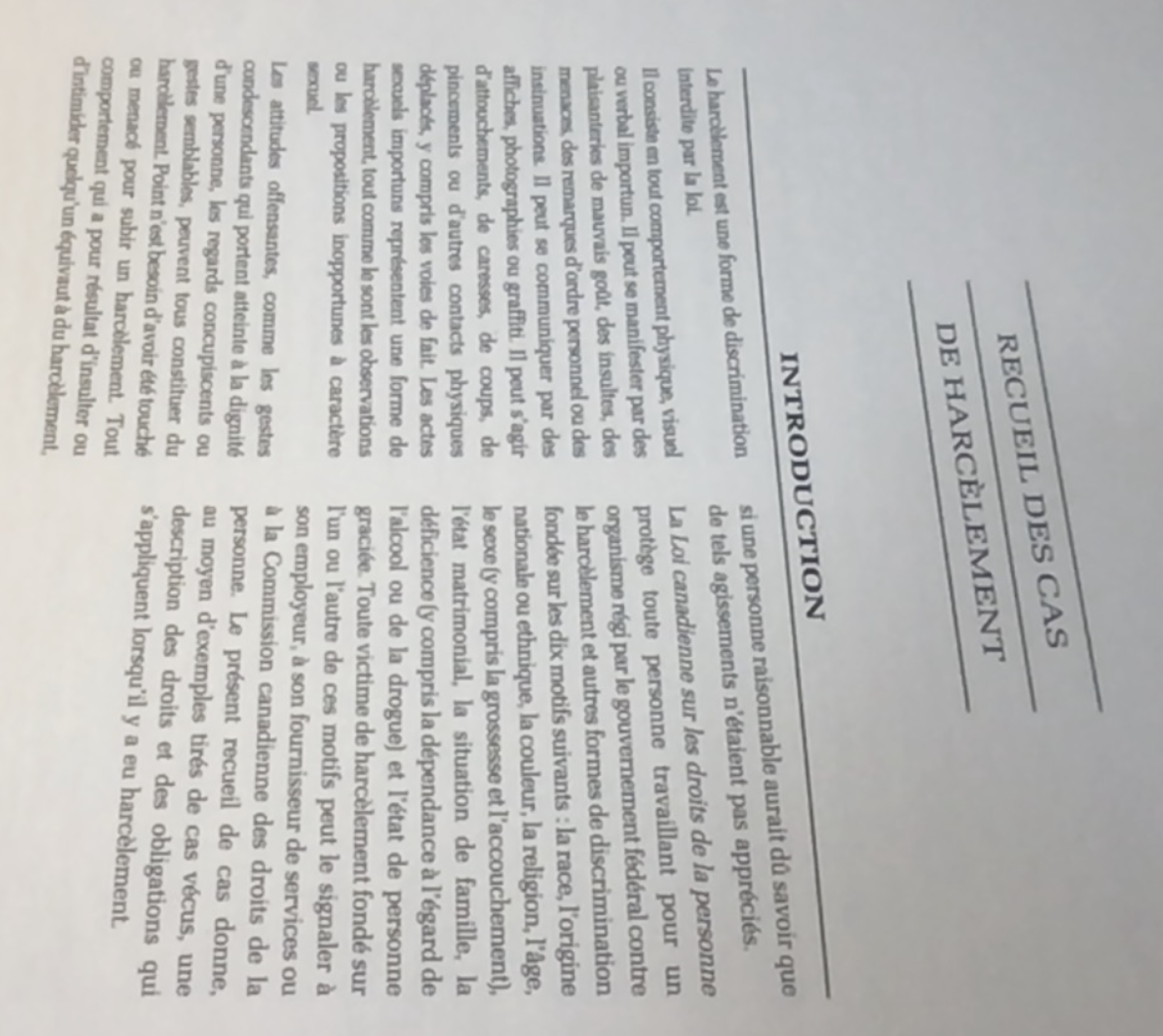 Recueil des cas de harcèlement: Sommaires de cas de harcèlement / Harassment Casebook: Summaries of Selected Harassment Cases